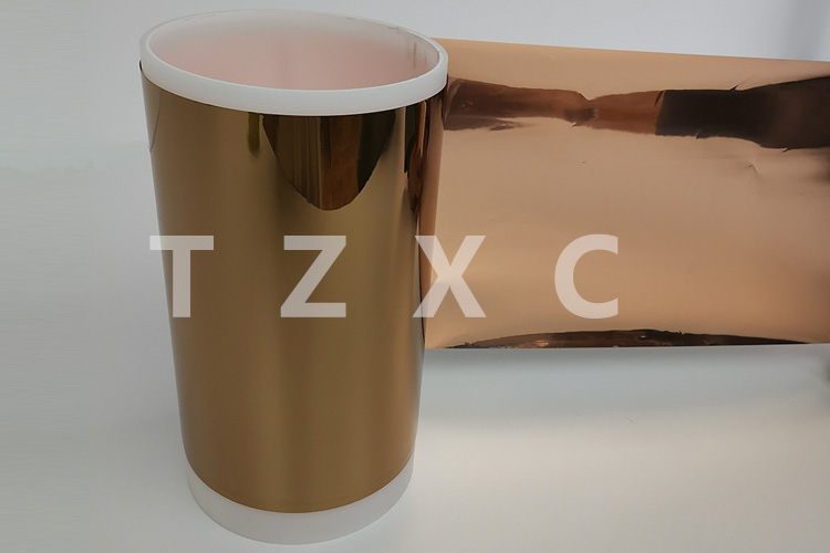 導電PI膜;聚酰亞胺鍍銅膜;也叫鍍銅聚酰亞胺膜;鍍銅PI;采用高純無氧銅,在表面通過真空磁控濺射的方式沉積一層高純無氧銅導電層;